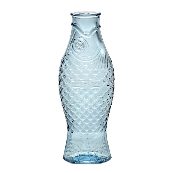 Fish & Fish karaff i blått från Serax är ett vackert exempel på hur design kan vara både praktisk och poetisk. Med sin inspiration från sillens form och 1930-talets pressglas har Paola Navone skapat en karaff som fungerar lika bra som serveringskärl som dekorativ inredningsdetalj.