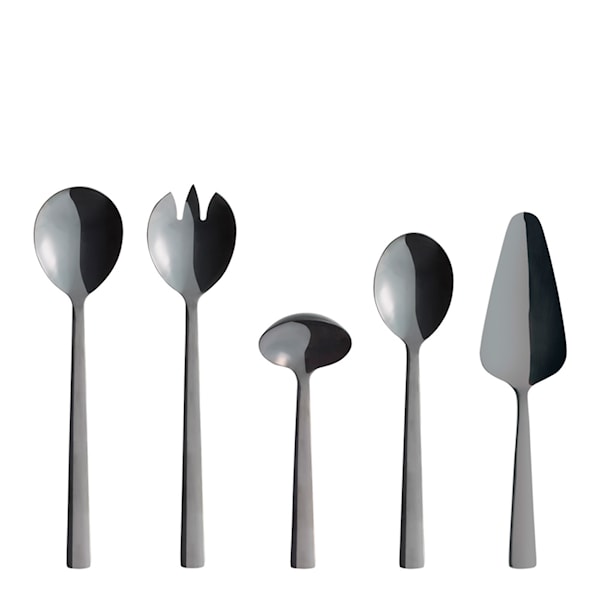 RAW serveringsset 5 delar från Aida är ett elegant och praktiskt set med köksredskap som gör serveringen både enkel och stilfull. Setet innehåller allt du behöver – salladsset, såsslev, potatissked och tårtspade – och blir ett naturligt komplement till ditt RAW-bestick. Varje del är tillverkad av rostfritt stål med en vacker yta som finns i flera färger, så att du enkelt kan matcha med resten av dukningen.