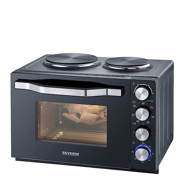 Severin TO2074 kombinerar en kraftfull elektrisk ugn med två robusta kokplattor – en perfekt lösning för dig som vill ha ett komplett minikök i ett och samma format. Med 30 liters kapacitet och funktioner som varmluft, över-/undervärme och roterande grillspett erbjuder den stor flexibilitet i en kompakt enhet.
