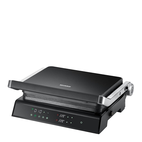 Severin KG2399 Sevini Comfort är en digital kontaktgrill med avancerade funktioner som gör det enkelt att laga god mat varje dag. Den digitala kontrollpanelen med fem automatiska program och individuell temperaturkontroll för båda grillplattorna ger dig flexibilitet för all sorts mat.