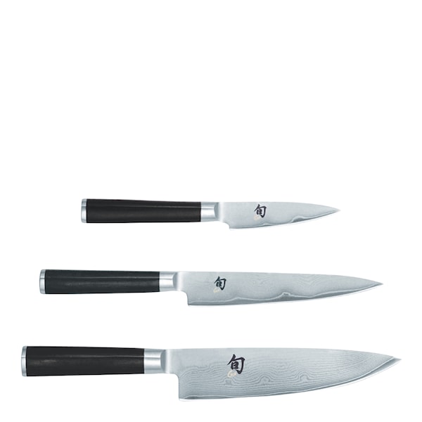 Shun Classic knivset i 3 delar från KAI. Setet innehåller en skalkniv 9 cm, en universalkniv 15 cm och en kockkniv 20 cm. En perfekt present till matlagningsentusiasten! Knivarna har en kärna av kvalitetsstålet VG-MAX och 32 lagers damaskstål på vardera sida om kärnan som ger dem ett vackert mönster. Handtagen är tillverkade av laminerat Pakkaträ som är slipat och polerat med en glansig finish. Knivarna passar perfekt både för ambitiösa hemmakockar och i professionella kök.