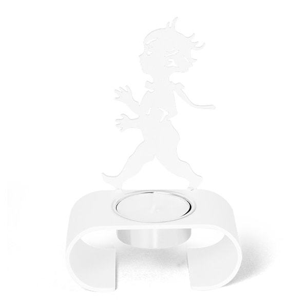 Nätt silhuettljusstake med avbildning av den klassiska Solstickanpojken skapad av Einar Nerman 1936. Ljushållaren kastar vackra skuggor då den är tänd. Tillverkad av pulverlackad stål.