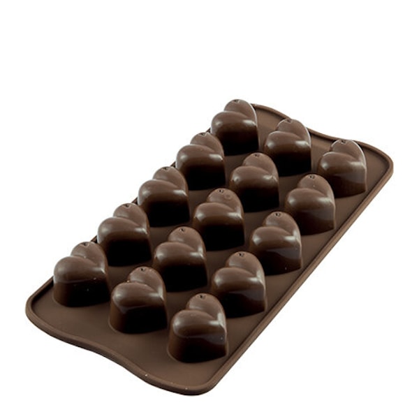 Med Monamour-silikonform från Silikomart gör du lätt 15 hjärtformade praliner hemma. Formen är 30 x 22 x 2,5 cm och ger jämna resultat varje gång.