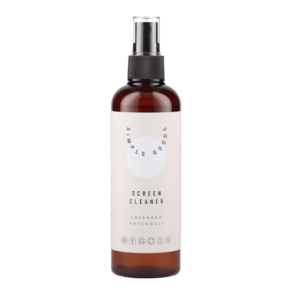 Lavendel skärmrengöring 150 ml beige från Simple Goods är en skonsam och pH-neutral rengöringsprodukt som effektivt löser upp och tar bort smuts, fett och lukt från skärmar utan att använda skadliga kemikalier. Denna skärmrengöring är tillverkad av naturliga ingredienser och drivs av probiotiska bakterier, vilket gör den 100 % biologiskt nedbrytbar. Produkten har antistatiska egenskaper och lämnar inga fläckar eller rester.