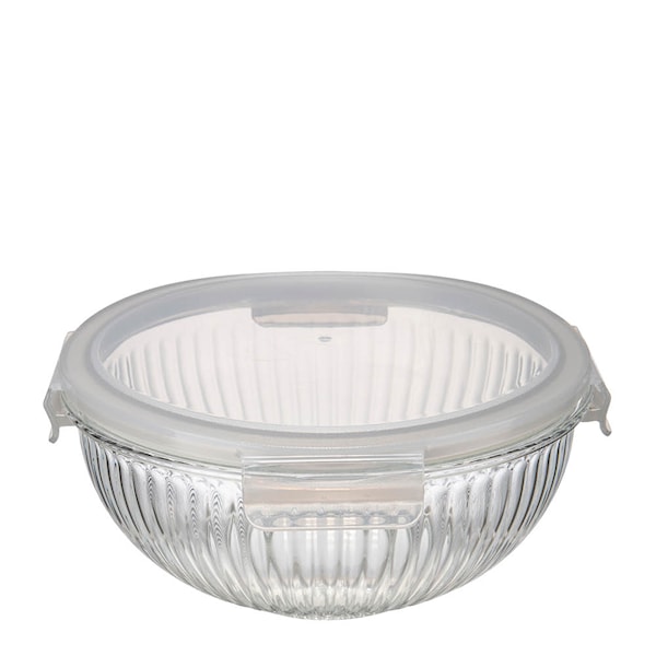 bAYk Skål 2 L med lock från Modern House av eldfast glas och lufttätt lock med silikonkant som håller maten fräsch längre.