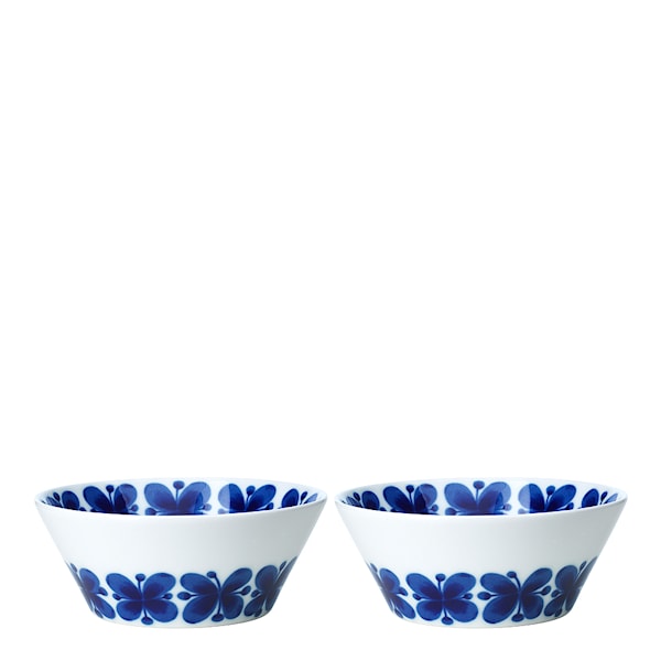 Rörstrand Mon Amie Skål 30 cl 2-pack är ett set med två mindre skålar i fältspatporslin, formgivna av Marianne Westman med originaldesign från 1952. Det ikoniska koboltblå blommönstret, inspirerat av skvattram från sent 1940-tal, ger skålarna ett tydligt och igenkännbart uttryck som gjort Mon Amie till en av Rörstrands mest uppskattade serier. Den kompakta storleken kombinerar funktion med ett dekorativt formspråk som passar i många sammanhang.