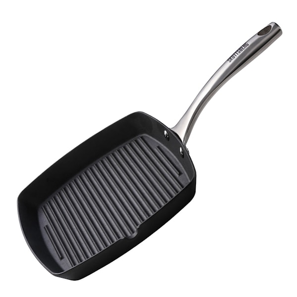 Det ihåliga handtaget förblir svalt under användning och ger ett stabilt och säkert grepp. Pannan är värmebehandlad för att vara motståndskraftig mot rost och repor, och klarar höga temperaturer utan problem. Perfekt för att grilla grönsaker, steka kött och fisk eller göra en riktigt krispig toast.