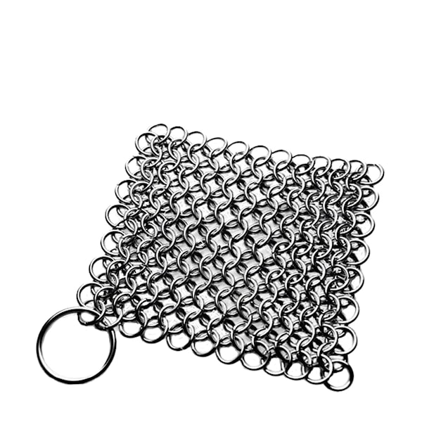 Skottsbergs skrubbdyna i rostfritt stål är särskilt utvecklad för rengöring av gjutjärns- och kolstålspannor. Med sin ringbrynjedesign avlägsnar den effektivt fastbrända matrester utan att skada pannans naturliga patinaskikt.