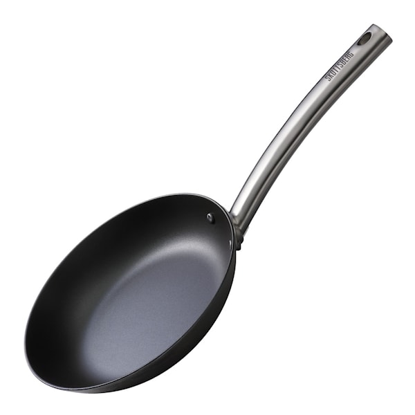 Skottsberg kolstålspanna på 20 cm är en riktig arbetshäst i köket, utvecklad för dig som vill ha funktion, hållbarhet och naturliga matlagningsresultat. Pannan är förinbränd två gånger med vegetabilisk olja, vilket ger en naturlig non-stick-yta. Det gör att den fungerar som en belagd panna – men utan risk för att beläggningen släpper. Ytan förbättras dessutom ju mer du använder den, vilket ger en ännu bättre stekupplevelse över tid.