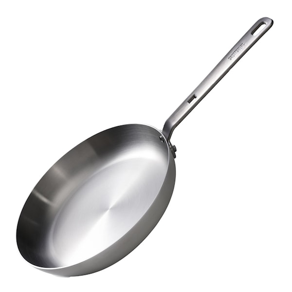 Aluminiumskiktet löper hela vägen upp längs pannans sidor, vilket ger snabb och jämn uppvärmning även i kanterna. Det minskar risken för att maten fastnar och gör pannan mycket energieffektiv. Den rostfria ytan ger enkel rengöring och lång livslängd, även vid daglig användning.