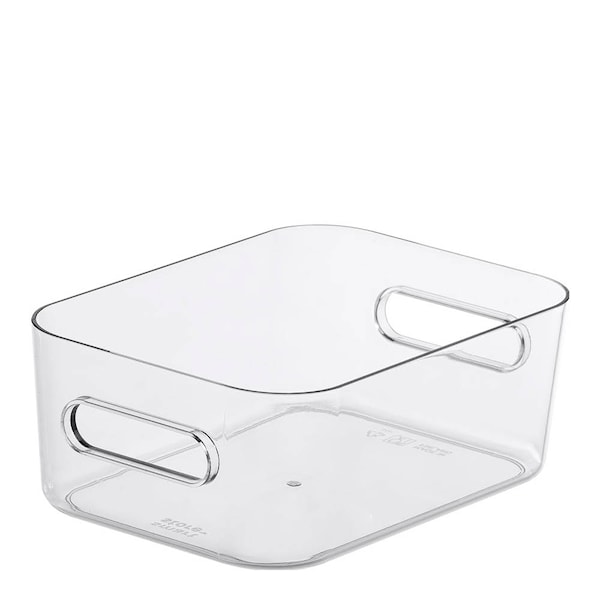 Perfekt för smink, småtuber, kontorsmaterial eller matlådor. Kan staplas med lock och placeras i varandra utan. De praktiska handtagen gör den lätt att lyfta och flytta.