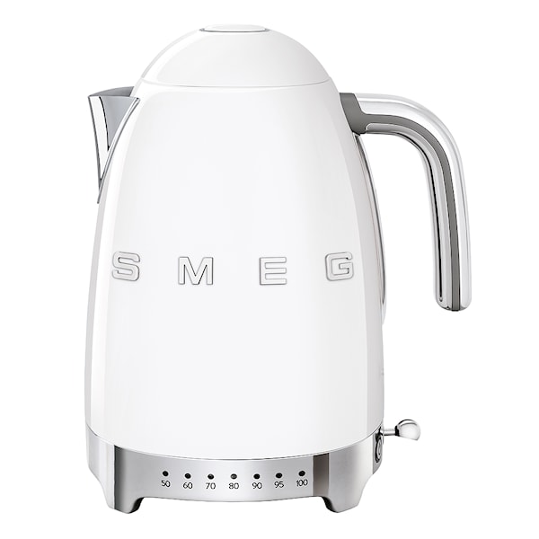 Smeg KLF04 vattenkokare kombinerar ikonisk 50-talsdesign med modern temperaturprecision. Med sin eleganta retrostil och justerbara temperaturkontroll i sju steg, är detta en vattenkokare som tilltalar både ögat och teknikälskaren. Den höga effekten på 2400 watt säkerställer snabb uppvärmning, medan kapaciteten på 1,7 liter räcker till hela familjen.