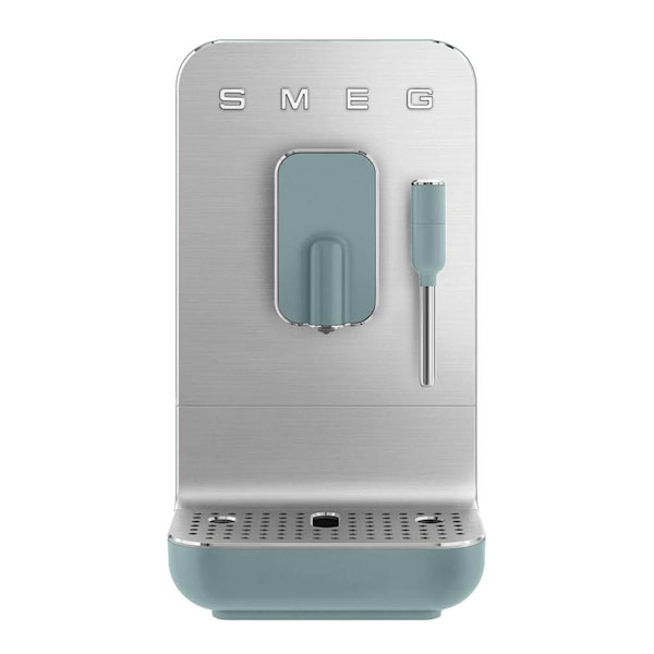 Smeg kaffemaskin med mjölkskummare, modell BCC12, gör det enklare än någonsin att uppleva den underbara doften och smaken av nymalet kaffe. Med denna helautomatiska kaffemaskin kan du njuta av olika kaffedrycker genom att enkelt trycka på en knapp. Dessutom är den utrustad med en ångstång för att enkelt förbereda mjölkbaserade kaffedrycker.