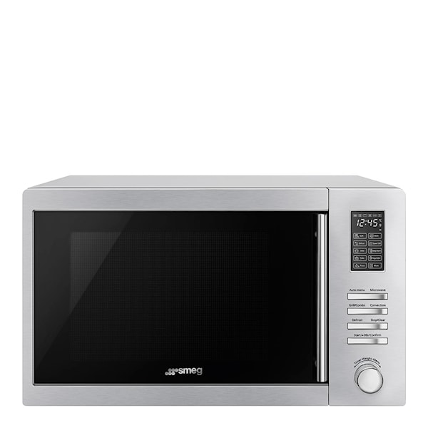 Tillred en snabb middag med eleganta Smeg Mikrovågsugn med Varmluft i rostfritt stål. Denna kraftfulla mikrovågsugn har en volym på 34 liter och kommer med 10 olika funktioner för att möta alla dina matlagningsbehov. Den är utrustad med en LED-skärm för enkel och tydlig användning.