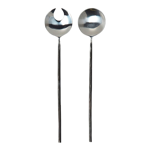 Style salladsbestick från House Doctor är ett rustikt set där det råa järnhandtaget på ett vackert sätt möter det mjuka rundade huvudet. Setet innehåller en gaffel och en sked, och tål diskmaskin. Det är perfekt att användas både till vardag och fest.