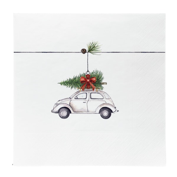 Lunchservetten Christmas Driving Home från Sögne är ett stilrent och praktiskt inslag vid både vardagsmåltider och festligare tillfällen under december. Tillverkad i trelagers papper av hög kvalitet kombinerar den styrka med en mjuk känsla som gör den behaglig att använda.