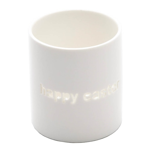 Sögne Ljuslykta Happy Easter small i vitt är en stämningsfull liten porslinslykta med utskuret mönster och påskhälsningen “Happy Easter”. Ljuset sprider sig mjukt genom det tunna porslinet och skapar ett harmoniskt intryck.