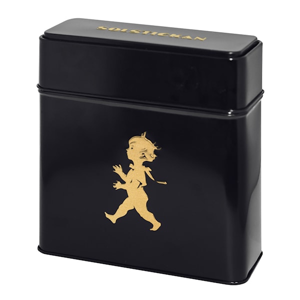 Plåtburk för kaffefilter med avbildning av den klassiska Solstickanpojken som formgavs av Einar Nerman år 1936. Storleken passar är framtagen för kaffefilter (104- samt 1x4-storlekar) men passar även perfekt för förvaring av till exempel servetter eller annan småförvaring.