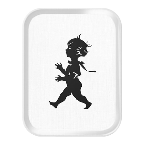 Stor rektangulär bricka med avbildning av den klassiska Solstickanpojken som formgavs av Einar Nerman år 1936. När den inte används blir den en snygg inredningsdetalj.