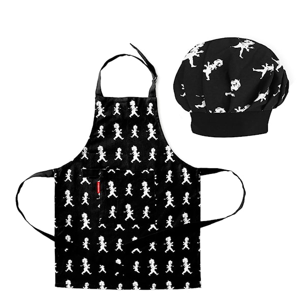 Ett set med barnförkläde och kockmössa i 100% bomull för små mästerkockar. Setet levereras i ett snyggt fodral och tål att spillas på i flera år framöver. Både förkläde och mössa har repeterande mönster av den numera klassiska Solstickanpojken som formgavs av Einar Nerman år 1936. Förklädet har en stor ficka på magen, passar åldern 2-6 år och finns i flera olika härliga färger.
