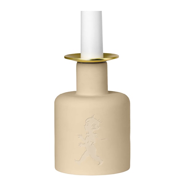 Solstickan ljusstake i keramik 10×7 cm kombinerar enkel design med smart funktion. Ljusmanschetten i guld förhöjer uttrycket samtidigt som den skyddar mot stearinstänk.