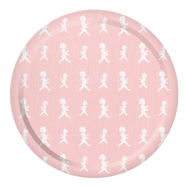 En härlig, rund bricka från Solstickan. Den klassiska Solstickanpojken som formgavs av Einar Nerman år 1936, i ett repeterande mönster finns i flera vackra färger att välja mellan.