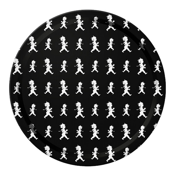 En härlig, rund bricka från Solstickan. Den klassiska Solstickanpojken som formgavs av Einar Nerman år 1936, i ett repeterande mönster finns i flera vackra färger att välja mellan.