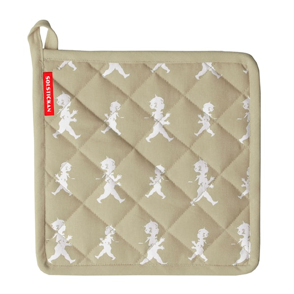 En klassisk vadderad grytlapp tillverkad i 100% bomull med det ikoniska avbildningen av Solstickanpojken som formgavs av Einar Nerman år 1936.