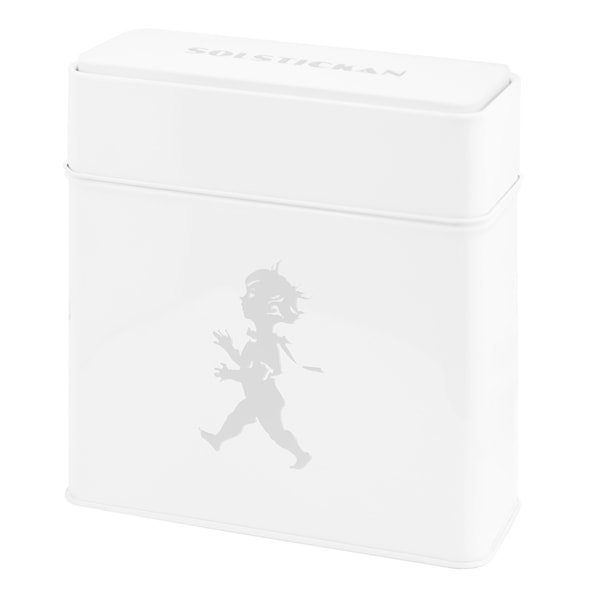 Plåtburk för kaffefilter med avbildning av den klassiska Solstickanpojken som formgavs av Einar Nerman år 1936. Storleken passar är framtagen för kaffefilter (104- samt 1x4-storlekar) men passar även perfekt för förvaring av till exempel servetter eller annan småförvaring.