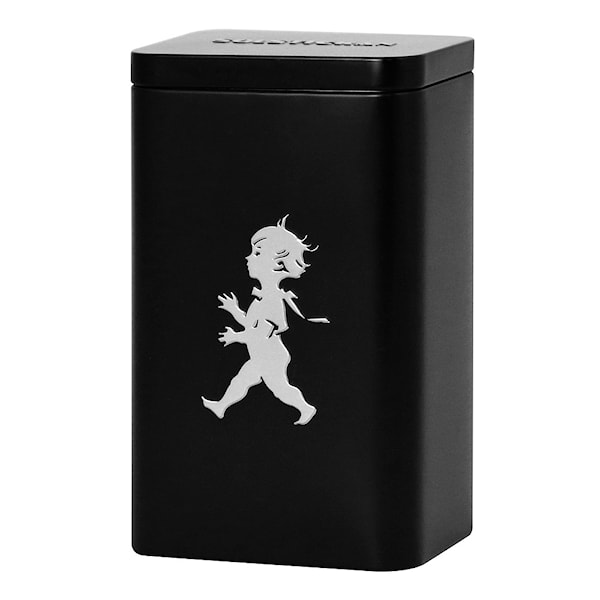Teburk i plåt med avbildning av den klassiska Solstickanpojken som formgavs av Einar Nerman år 1936. Storleken passar de vanligaste påsarna med lösviktste men även till tepåsar eller annan småförvaring.