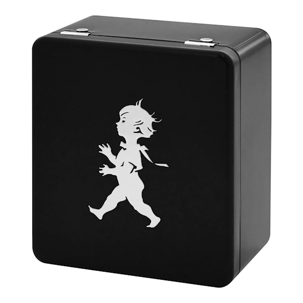 Solstickan har tagit fram en kvadratisk burk i plåt för att förvara exempelvis tepåsar i, de 4 facken är perfekt anpassade till normalstora tepåsar. Som alla Solstickans produkter har den ett rent och enkelt formspråk med den ikoniska Solstickanpojken präglad på locket. Burken är som sagt framtagen för tepåsar men passar såklart även till andra saker du behöver sortera och förvara på ett snyggt sätt.