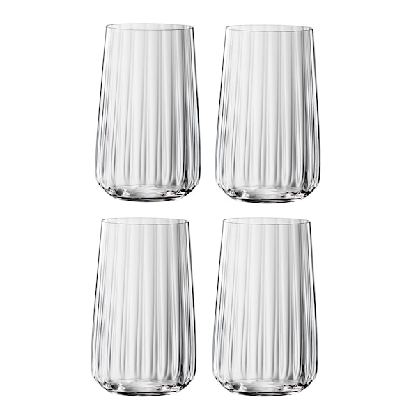Set med fyra höga drinkglas från Spiegelaus serie Lifestyle. Med snygg och elegant design ger glasen en modern touch med spännande opitska effekter.