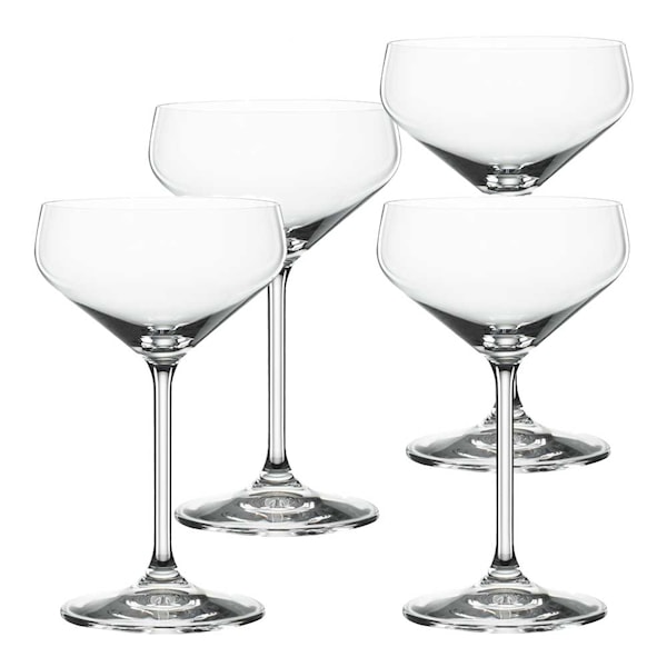 Champagneglas eller coupetteglas med vid öppning ur Spiegelaus serie Style, som fungerar lika bra att servera dessert ur. Glaset blir även ett perfekt cocktailglas för till exempel Amaretto Sour. Serien kännetecknas av raka linjer och modern design, och passar de flesta inredningsstilar.