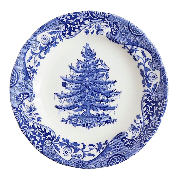Skapa en stämningsfull dukning med Spodes Blue Italian Christmas Tree-assiett på 20 cm. Den klassiska blåvita kanten kombineras här med en elegant blå julgran, inspirerad av den kända Christmas Tree-serien – perfekt för julens alla tillfällen.