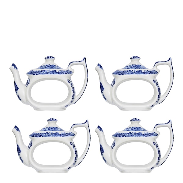 Ge din dukning en lekfull men elegant detalj med detta set om fyra servettringar från Spodes klassiska Blue Italian-kollektion. Inspirerade av den ikoniska tekannan i samma serie är varje servettring formad som en liten porslinstekanna, vackert dekorerad med delar av det välkända blåvita mönstret som hyllar det italienska landskapets tidlösa skönhet.
