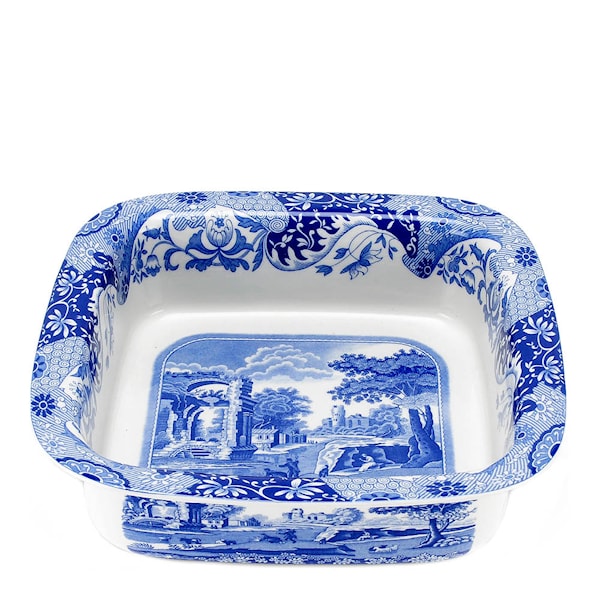 Spode Blue Italian ugnsform 25,5 x 25,5 cm är en praktisk och stilfull detalj i köket. Med sin kvadratiska form och det ikoniska blåvita landskapsmotivet blir formen ett självklart blickfång – både i ugnen och på bordet.