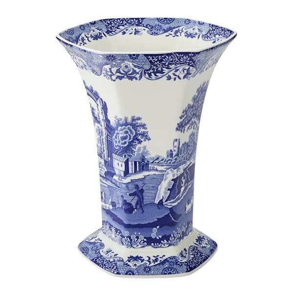 Den eleganta Blue Italian Hexagonal Vasen från Spode är verkligen en imponerande dekorationsdetalj som kommer att lysa upp vilket rum som helst. Med sin unika hexagonala form ger den enkel charm till middagsbordet, spiselkransen eller som en stilfull dekoration i ditt hem.