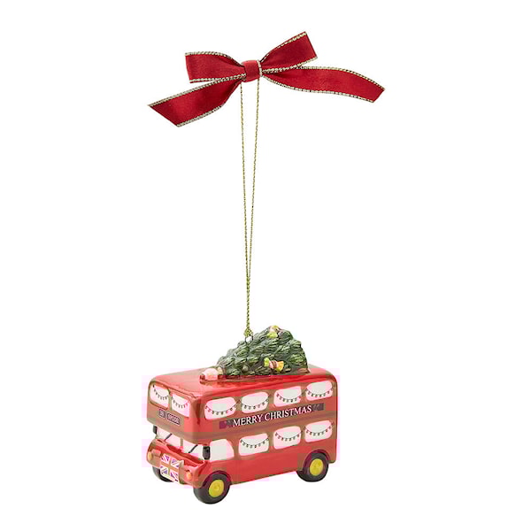 Spode Christmas Tree julgranspynt dubbeldäckare är en dekorativ och humoristisk hyllning till både julen och det brittiska arvet. Den röda bussen är utsmyckad med Spodes välkända julgransmotiv och detaljer som sprider glädje och tradition.