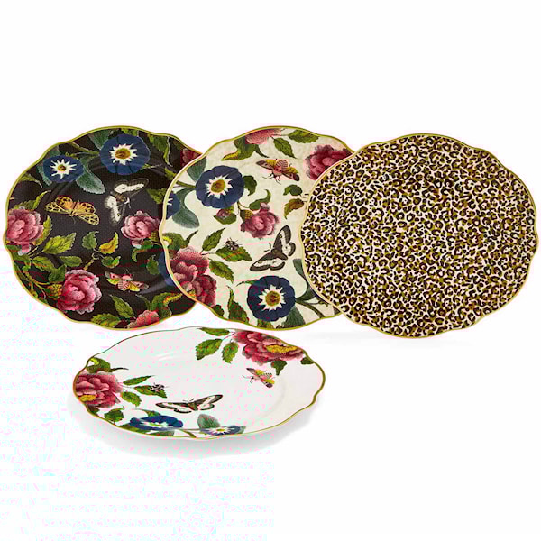 Dessa vackra assietter från Spode har underbara, mönster inspirerade av vildmarken med handmålade detaljer som kommer lysa upp varje dukning. De är tillverkade av exklusivt benporslin med vackra mönster som gör sig perfekt för finare tillfällen eller som en present till någon du tycker om. Kombinera gärna med andra produkter från samma kollektion. Säljs i 4-pack och vi rekommenderar handdisk för längre hållbarhet.