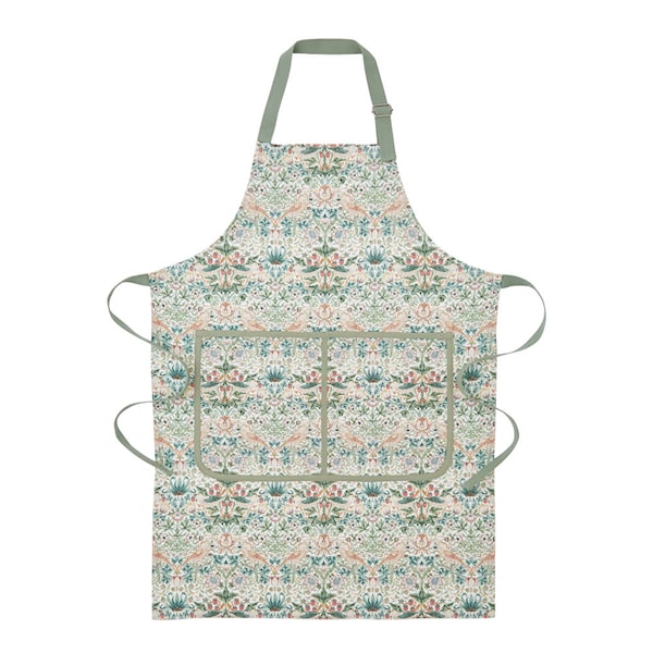 Förklädet Strawberry Thief från Morris & Co och Spode är ett vackert och praktiskt kökstillbehör med anor. Det tidlösa mönstret av William Morris tillför ett klassiskt uttryck och passar perfekt för dig som uppskattar både hantverk och estetik.