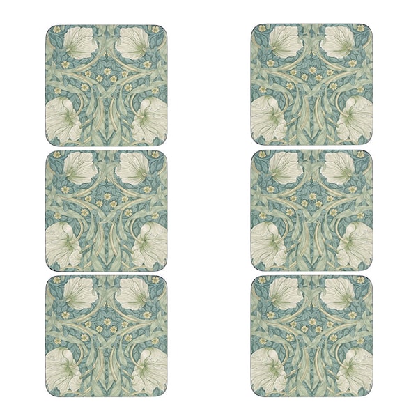 Ge dukningen en elegant touch med Morris & Co Pimpernel-glasunderlägg (6-pack) från Spode i gröna och gula toner. William Morris ikoniska mönster ger en tidlös estetik.