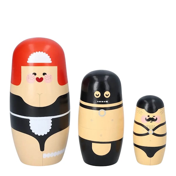 Spring Copenhagen Babushka Sexy Expressions träfigur 3 st i körsbärsträ är en humoristisk och ovanlig designprodukt från Expressions-serien. Sexy Time-setet ger den klassiska babushkan en lekfull och kaxig tolkning med tydlig personlighet.