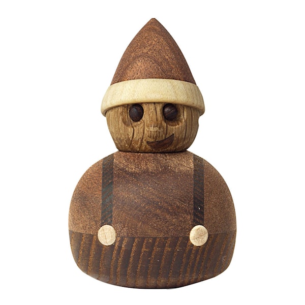 Tillverkad i FSC-certifierad mahogny, lönn, termoask och ek. Den 8 cm höga figuren är designad av Thor Høy och handmonterad med omsorg. En charmig julprydnad som kompletterar Santa och Woozie, och som gärna tar plats i hemmet varje december.