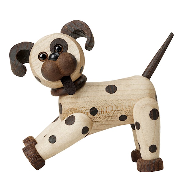 Med sina karaktäristiska fläckar och pigga hållning är Joy en träfigur som sprider energi i varje rum. Den lilla hunden är tillverkad i FSC-märkt trä och handmonterad med stor precision – en vovve med både personlighet och hållbarhetsfokus. Chresten Sommers design fångar hundens lekfullhet på ett sätt som gör att man inte kan låta bli att le.