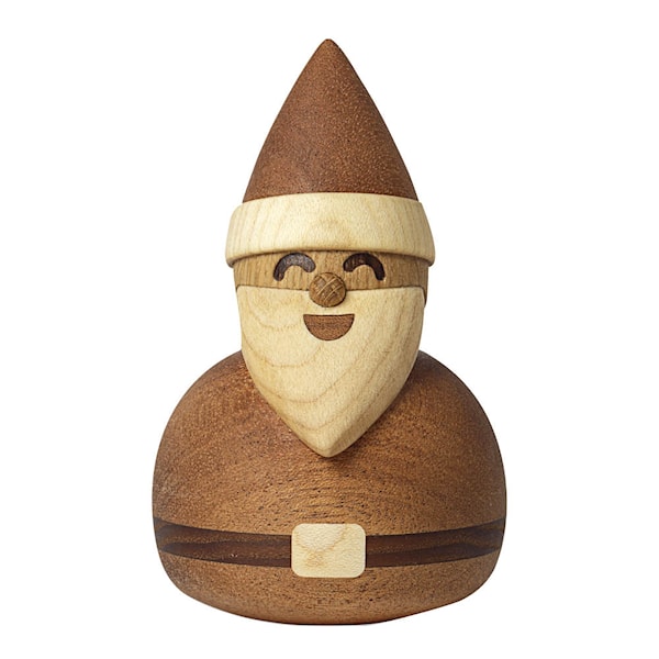 Den 10 cm höga figuren är handgjord i FSC-certifierad mahogny, lönn, termoask och ek – ett exempel på hur skandinavisk design möter julens magi. Placera honom på hyllan, bordet eller fönsterbrädan för att sprida värme och julkänsla i hemmet. En perfekt present och en ny favorit bland julens dekorationer.