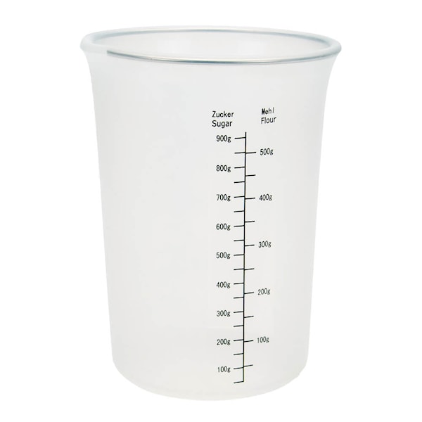 Städters måttbägare på 1 liter i silikon gör det lätt att mäta upp rätt mängd ingredienser. Skalan visar både volym (l/ml) och vikt för socker och mjöl.