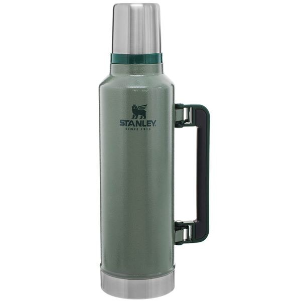 Stanleys numera klassiska termos är tillverkad i mycket slittåligt dubbelväggad rostfritt stål, perfekt att packa med på utflykten! Termosen har ett praktiskt handtag, är helt läckagesäker och håller din dryck varm eller kall i upp till 45 timmar, så att du alltid har en välsmakande dryck på fisketuren eller vandringen. Det isolerade locket använder du som kopp. Tål diskmaskin. Volym 1,9 liter.