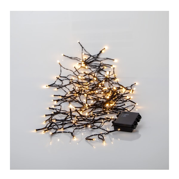 Akku ljusslinga 160 ljus. Uppgradera din ute- eller innemiljö med den batteridrivna ljusslingan från Star Trading! Med 160 varmvita ljuspunkter skapar den ett stämningsfullt sken, oavsett om du placerar den inomhus eller utomhus. Slingan drivs av 3xAA-batterier och har en smart timerfunktion som automatiskt aktiverar den i 6 timmar och släcker den i 18 timmar – perfekt för att förlänga batteritiden och skapa en mysig belysning utan ansträngning. Enkel att installera i trädgården eller på balkongen för att skapa en magisk atmosfär.