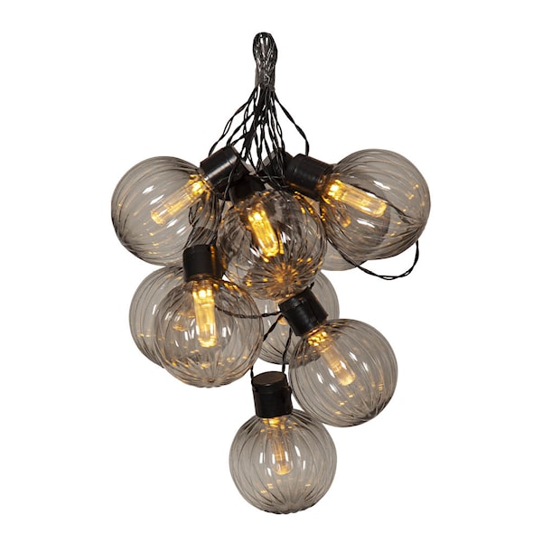Archy ljusslinga från Star Trading är en stilfull och funktionell lösning för utomhusbelysning. Slingan mäter 360 cm och har 10 lampor med rökfärgade skärmar i räfflad design. Ljuset blir mjukt och behagligt, samtidigt som lampornas struktur ger ett spel av skuggor och reflektioner som förhöjer atmosfären.