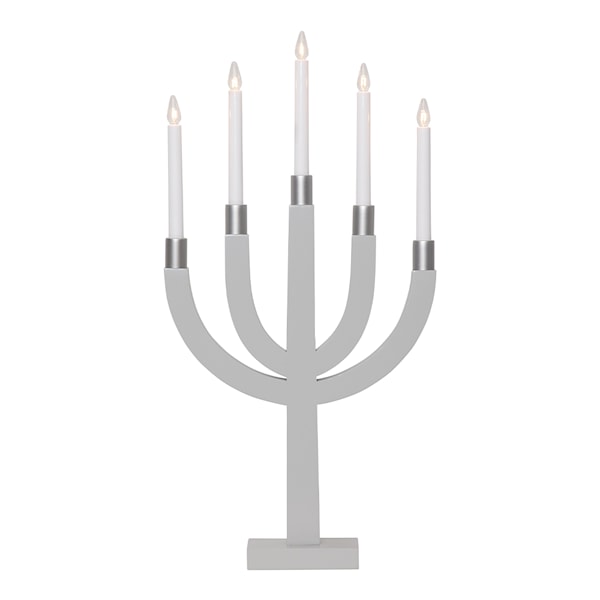 De fem ljuskällorna lyser klart placerad i fönstret eller skänken och med sin eleganta design sprider den en härlig stämning av jul. Ljusstaken är tillverkad av trä och kommer med en vit anslutningskabel på 1,8 meter. Ljuskällor ingår.